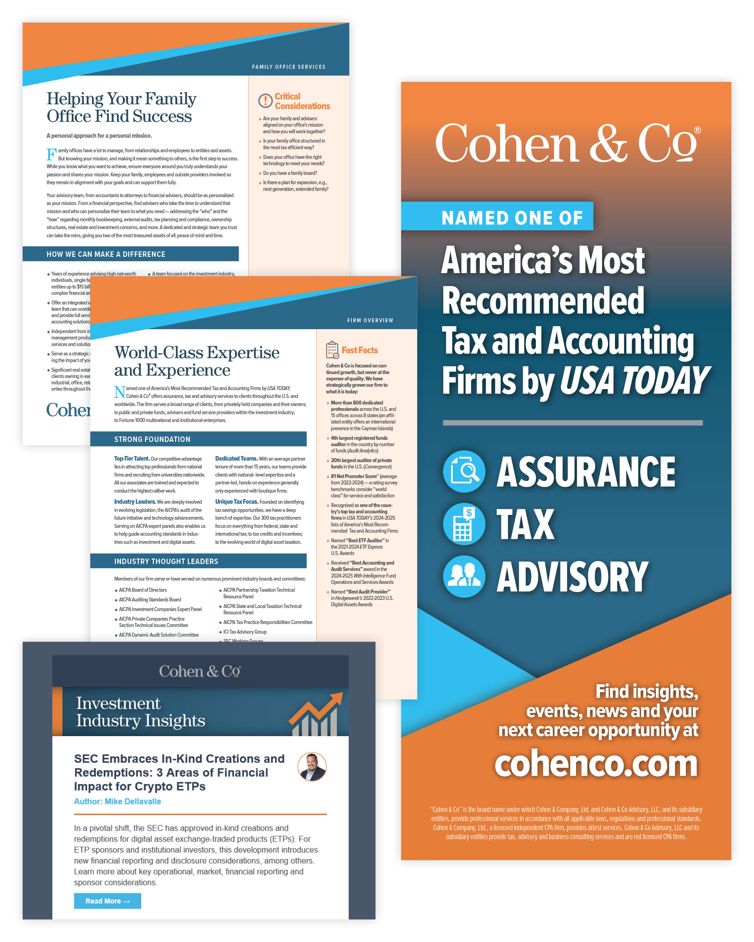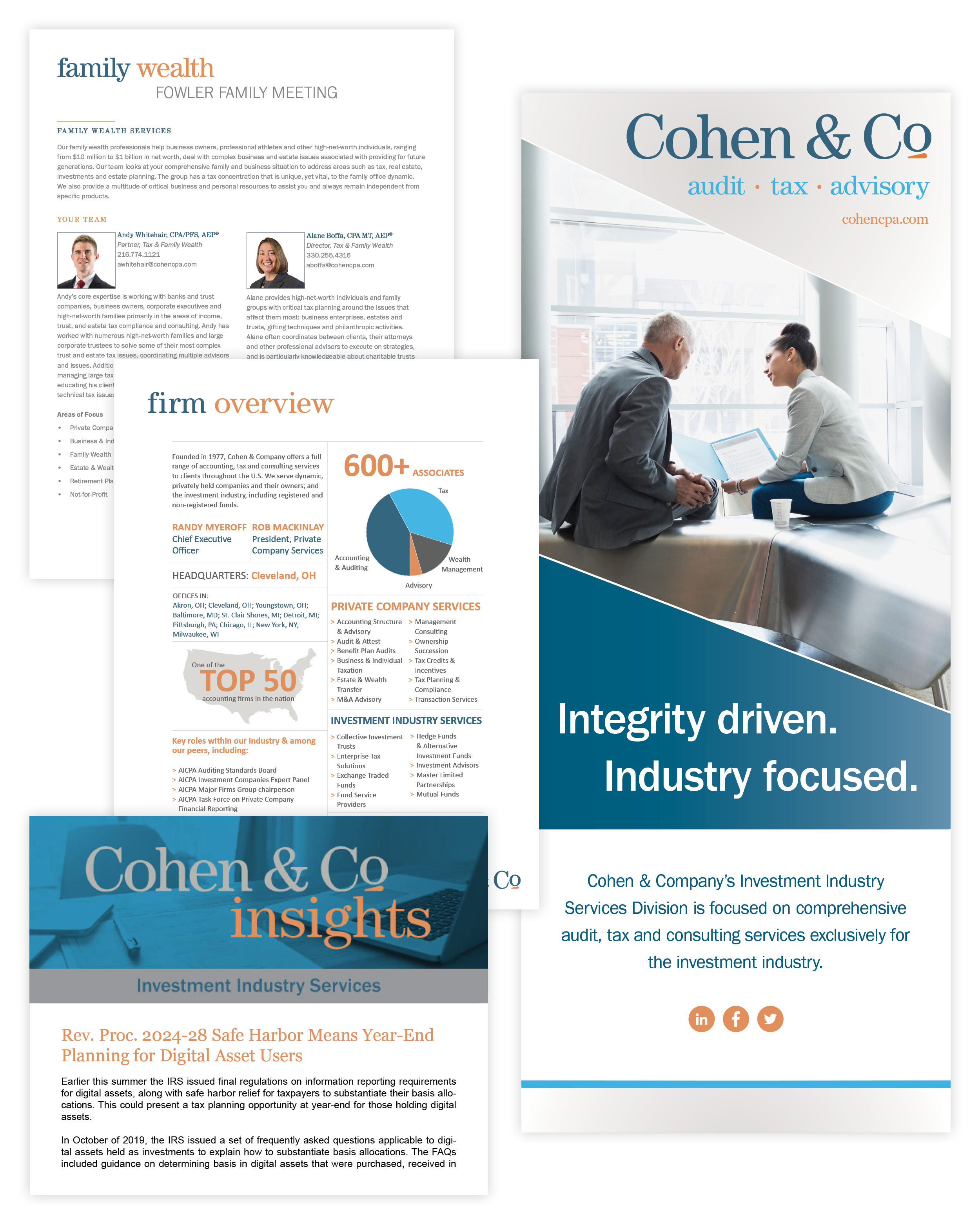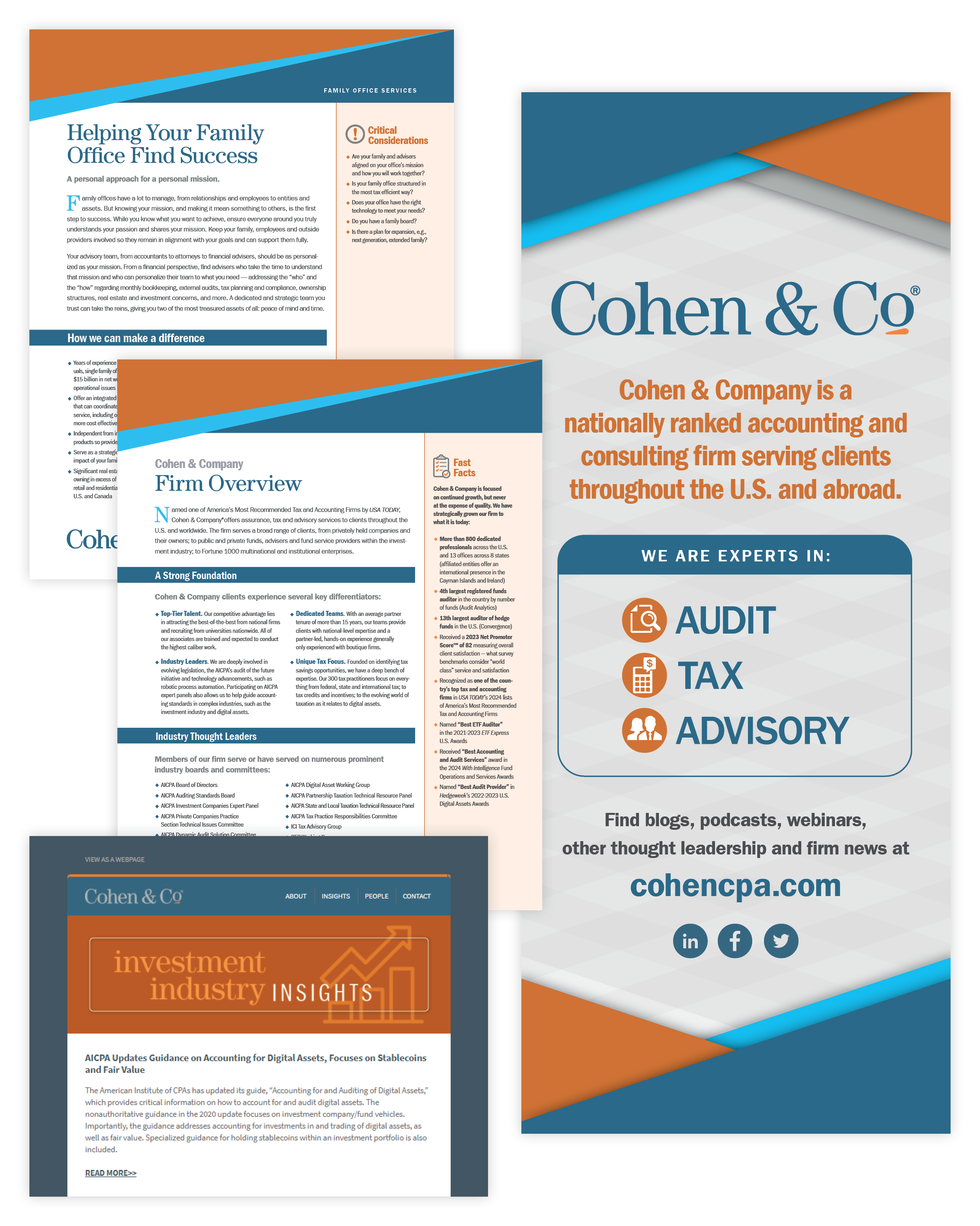 When I joined Cohen & Co in 2019, the challenge wasn’t just design—it was translating highly technical financial expertise into a visual language that could stand toe-to-toe with multinational firms. I was brought on to do one key thing: elevate the firm’s visual presence so it could confidently compete with larger, multinational firms in winning new business.